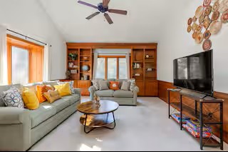 Whether you're seeking a weekend retreat, overnight stay or an extended visit, this 3,000 square foot haven, nestled on a 4-acre wooded lot is ideal for those looking to unwind in comfort. Destination Exhale offers you the freedom to settle in, unwind, and be soothed by nature’s serenity. Inside, it’s vintage features create a cozy, serene atmosphere, while modern amenities provide you with a pleasant stay. You'll appreciate the comfort and convenience of a fully-furnished home, complete with a kitchen and spacious rooms. For business or leisure, the space can provide a versatile atmosphere for relaxation and productivity.